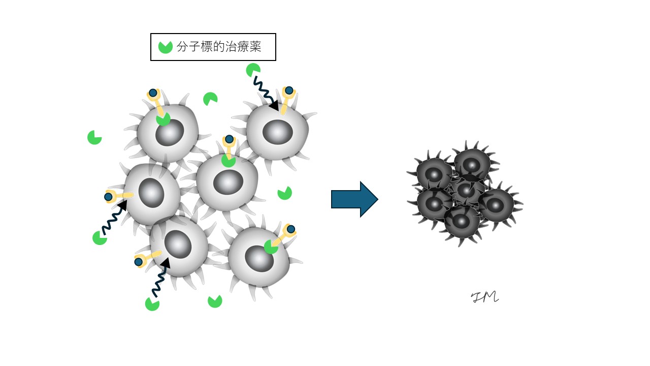 - 分子標的治療薬とは、異常なタンパク分子を標的としてその働きを妨害する薬剤です。