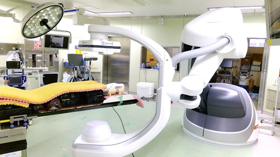 当院では、手術室に血管造影撮影装置と手術台を組み合わせたハイブリッド型手術室が稼働しています。
