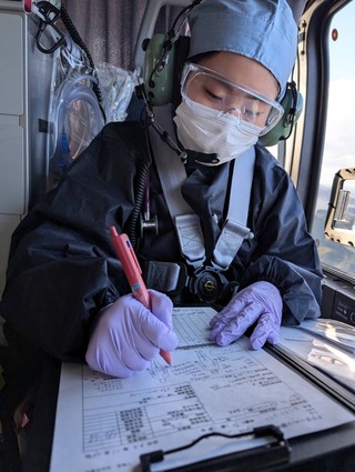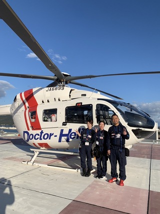 初めは自分がドクターヘリに乗る選択をするとは思っていませんでしたが、なかなかできない経験だと思いやってみることにしました。不安は大きかったですが、やってみて本当によかったと思っています。また、このような機会を下さった先生方や看護師さんに感謝しています。少しでも興味があれば、ドクターヘリにチャレンジしてみて下さい!