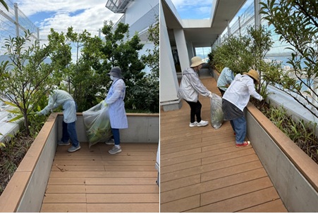園芸ボランティアの方は、毎週月曜日に患者さんとの動線を避けるなど感染対策に十分に気を配り、10F屋上庭園・4F屋外花壇の手入れをしてくださっています。