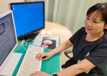 外来配属としてリンパ浮腫の専門診療の看護や看護外来を担当しています。リンパ浮腫看護・ケアについて講師として地域や医療者の支援も行っています。依頼に応じてがん浮腫ケアとして外来・病棟患者さんの指導や実践など内容に応じて対応しています。これらの関わりから必要な調整を行い、院内のスタッフや地域の訪問看護ステーションと連携を図り支援を行っています。