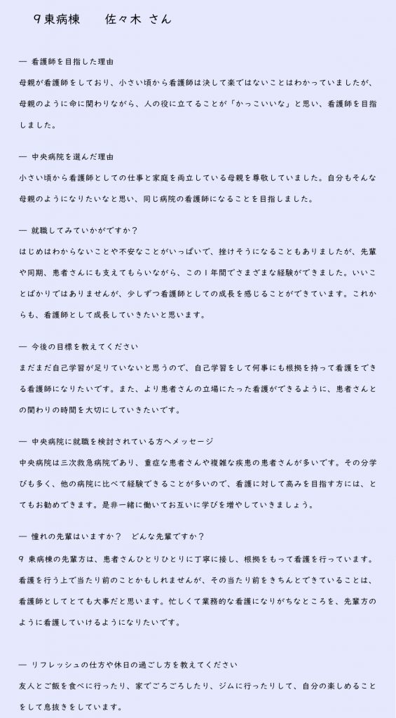 フレッシュナース 9階東病棟 佐々木 さん