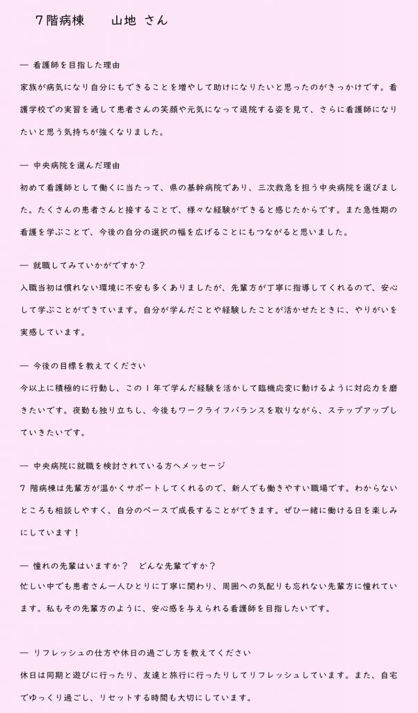 フレッシュナース 7階東病棟 山路 さん
